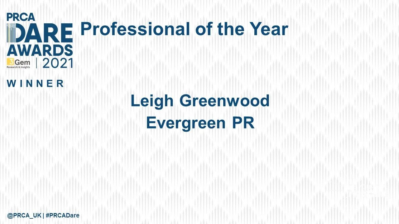 Evergreen PR has struck gold again this week - winning the New Consultancy of the Year award at the PRCA DARE Awards for Yorkshire and the North East. Evergreen’s MD, Leigh Greenwood, was named PR Professional of the Year for the region at the same event.